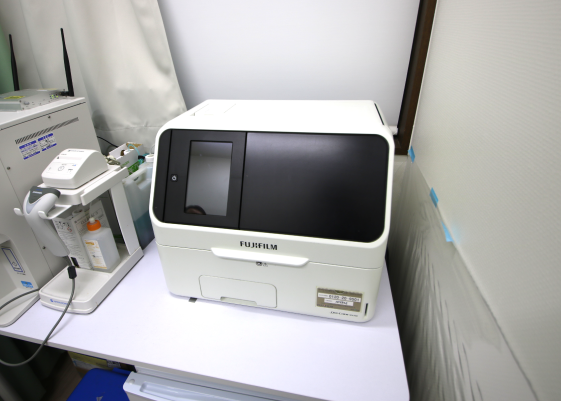 生化学検査が少量の血液で10分程度で生化学自動分析(測定)できる乾式臨床化学分析装置です。病気の早期発見、治療の効果など、速やかに精度の高い報告ができるよう努めています。